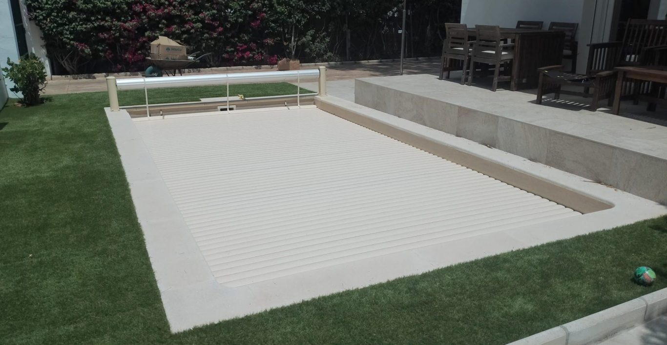 Algunos de nuestros proyectos desde el año 2009, cubiertas tanto modelos elevados como sumergidos, y material de las lamas, tanto PVC, como POLICARBONATO transparente y solar.