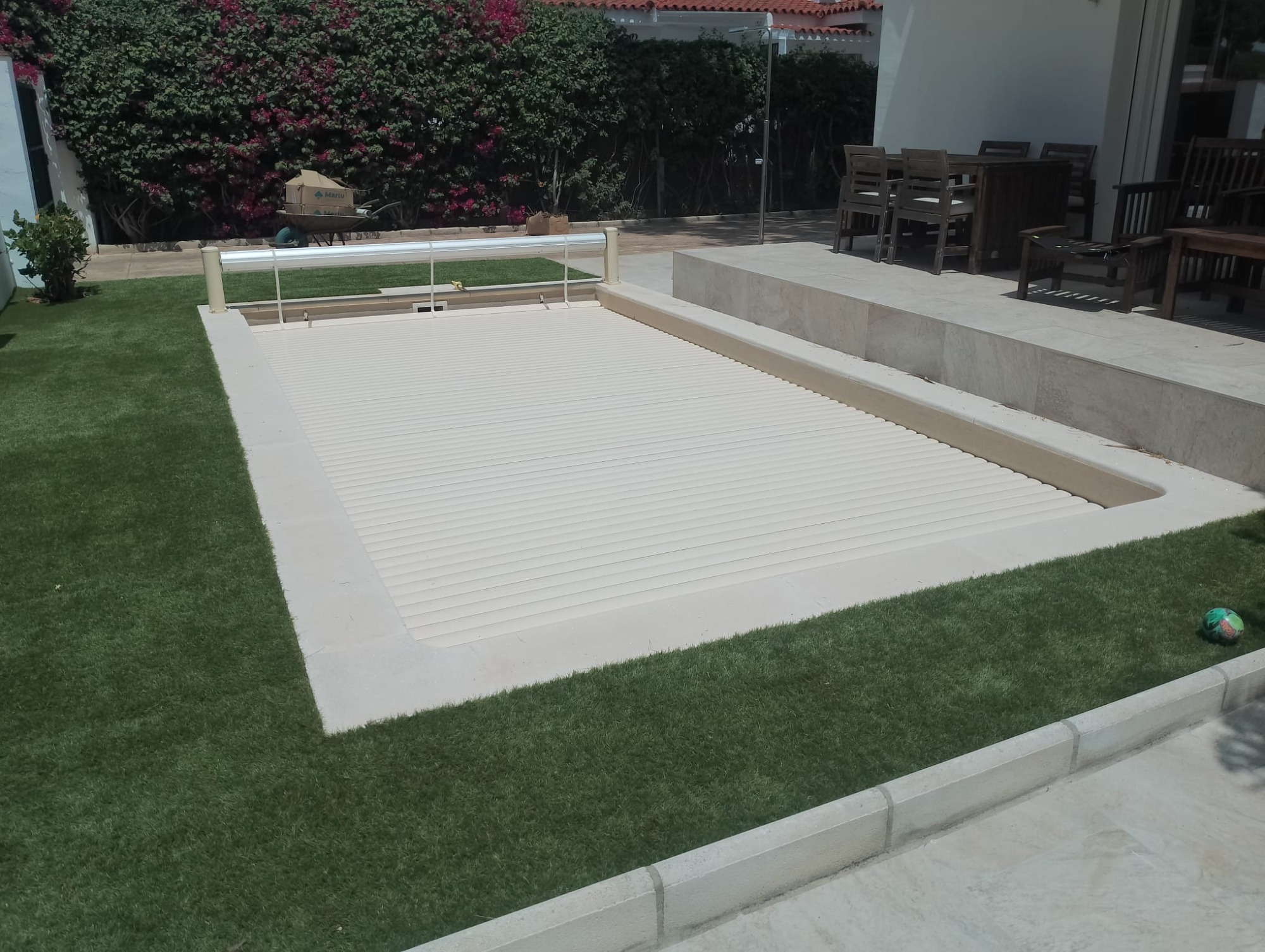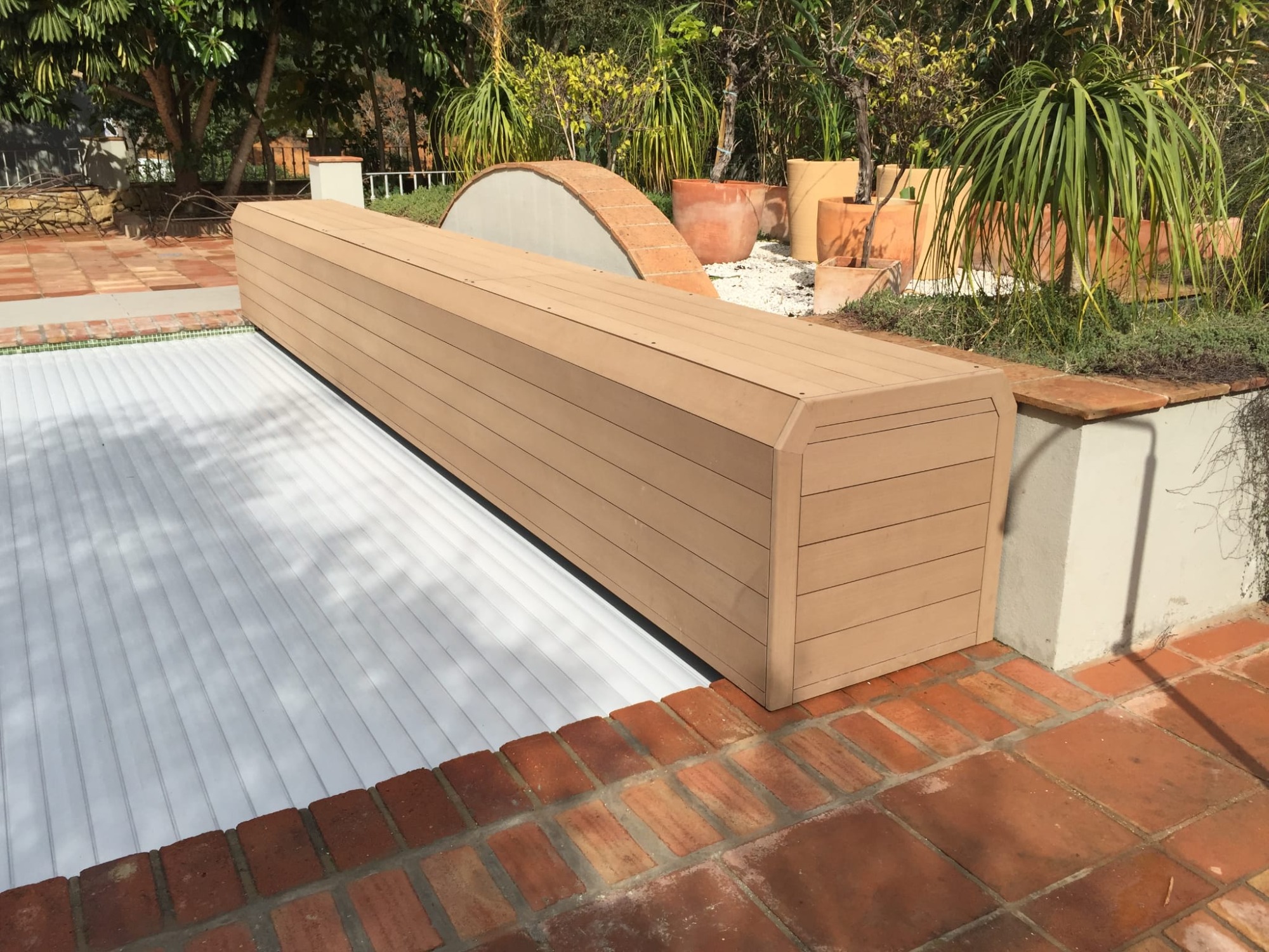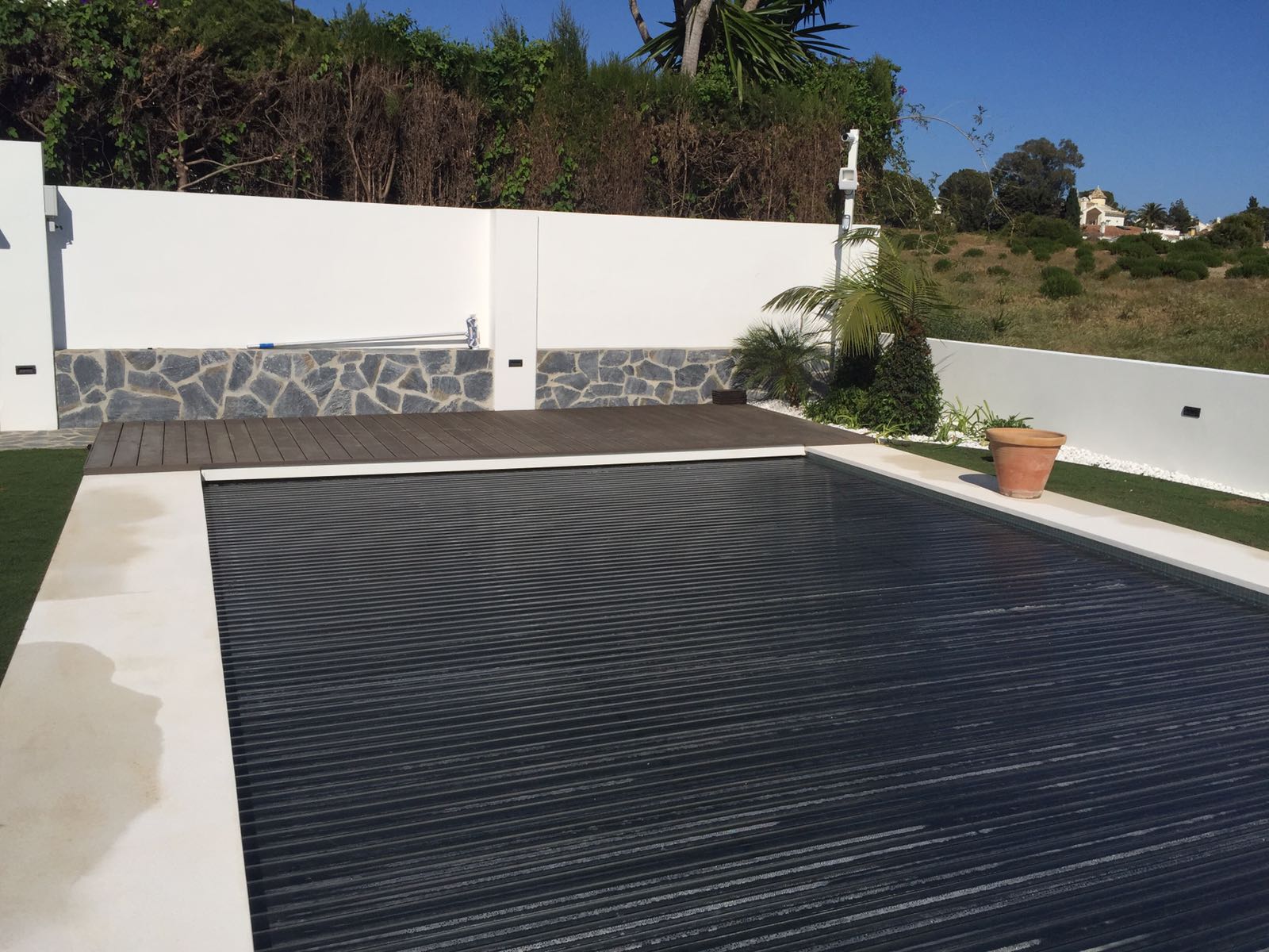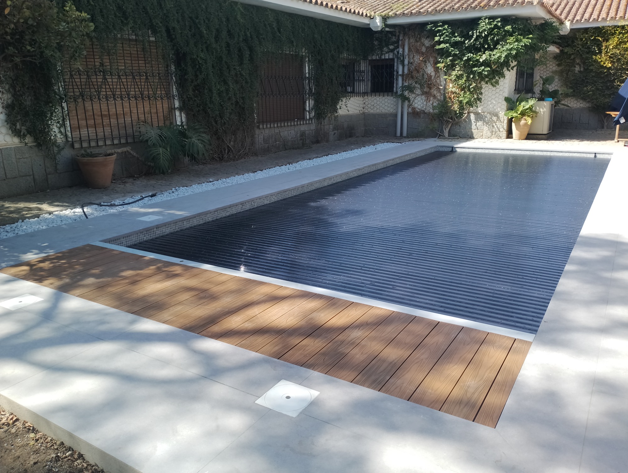 Algunos de nuestros proyectos desde el año 2009, cubiertas tanto modelos elevados como sumergidos, y material de las lamas, tanto PVC, como POLICARBONATO transparente y solar.